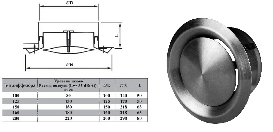 Анемостаты из нержавеющей стали изготавливаются для подсоединения к воздуховодам диаметром 100, 125, 150, 160, 200 мм
