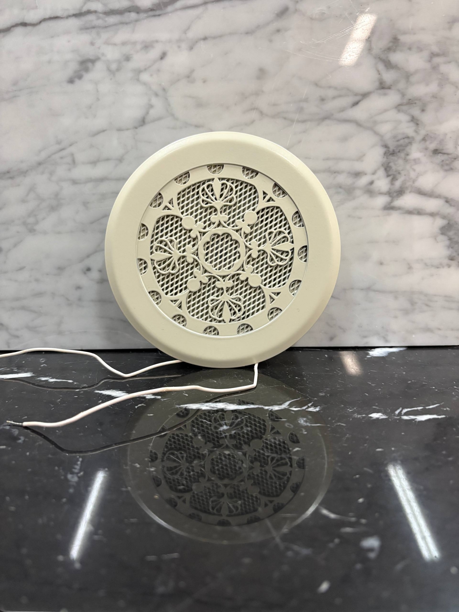 Диффузор на магнитах с вентилятором ТД100 бежевый RAL1013 цветочный орнамент 100 мм