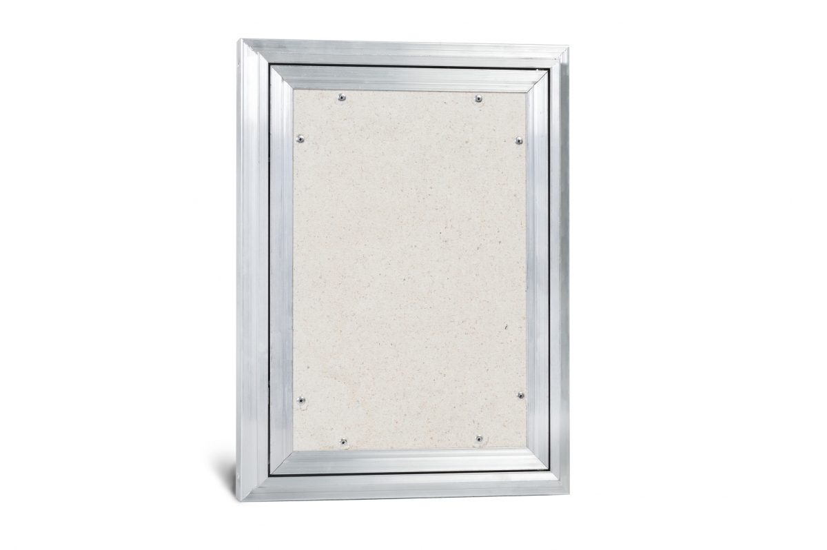 Рама люка для ревизии «Триумф» выполнена из алюминиевого профиля коробчатой формы и Г-образной в сечении для максимальной жесткости и удобства монтажа. Дверца люка изготавливается и алюминиевого профиля Т-образной формы, переменного сечения, с выраженными ребрами жесткости, что делает её конструкцию более жесткой в отличие от своих предшественников. Так как немаловажно исключить перекосы конструкции дверцы, чтобы не допустить деформации наклеенных на нее материалов. В отличие от наших конкурентов, толщина стенок алюминиевого профиля у нас по-прежнему 2 мм и более.