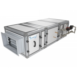 ОписаниеПриточная установка с водным охладителем, водяным нагревателем и смесительным узлом с 2-х или 3-х ходовым клапаном (узел подбирается исходя из типа водоснабжения), комплектуется воздушным клапаном с электроприводом (с возвратной пружиной), системой цифровой автоматики JetLogic с цветным сенсорным пультом управления и всеми необходимыми датчиками. Вентилятор Ebmpapst серии EC (произведен в Германии).
