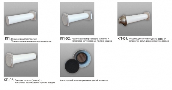 Комплектация - Внешняя решетка(пластик), Устройство регулирования притока воздуха, фильтрующие и теплошумоизолирующие элементы (25 см)
