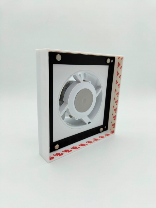 Диффузор состоит из пластикового перехода, металлической заслонкой, которой можно регулировать поток воздуха, либо полностью перекрыть его. К заслонке с помощью магнитов крепится декоративная квадратная панелька, которую можно покрасить в цвет потолка. Так же по ободку диффузора имеется надёжный двухсторонний скот марки 3М, к которому крепится полотно натяжного потолка. Наши диффузоры оснащены москитной сеточкой, которая препятствует попаданию насекомых в помещение.
