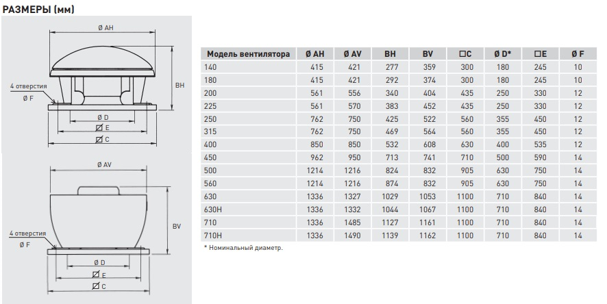 В зависимости от модели, вентиляторы комплектуются 4, 6, 8, 4/8 или 6/12 полюсными однофазными или трехфазными электродвигателями.