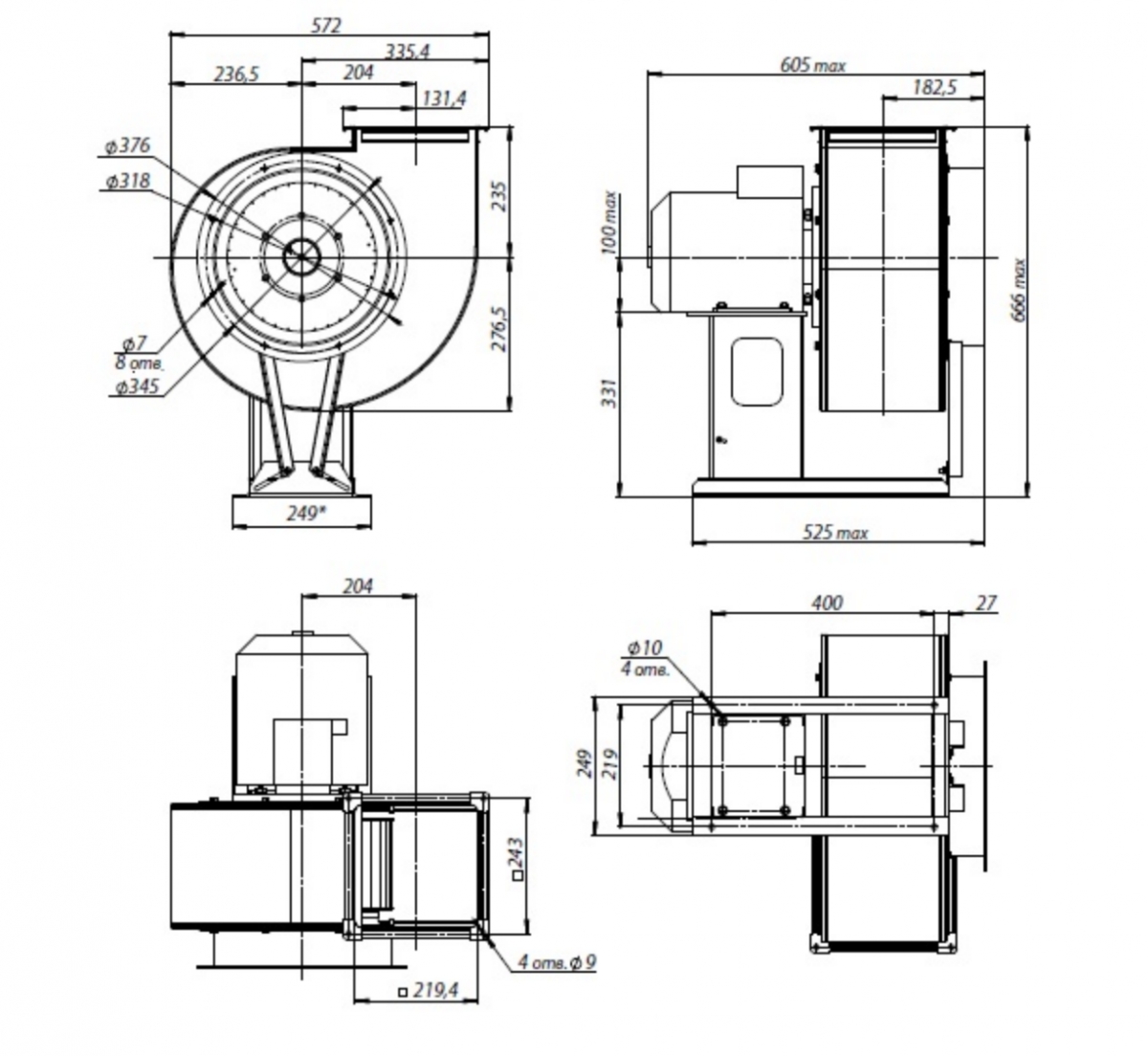 Радиальный вентилятор общего назначения ВР-300-45-3,15