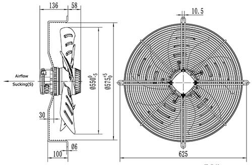 Вентилятор Ванвент YWF4E-630S-137/70-G вытяжной (всасывание) на сетке (10500 m/h)